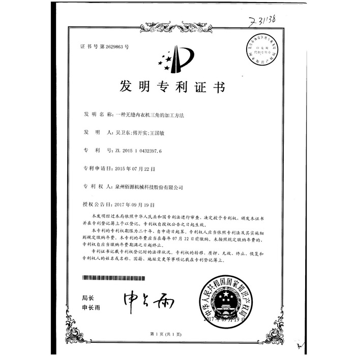 發(fā)明-一種無縫內(nèi)衣機(jī)三角的加工方法