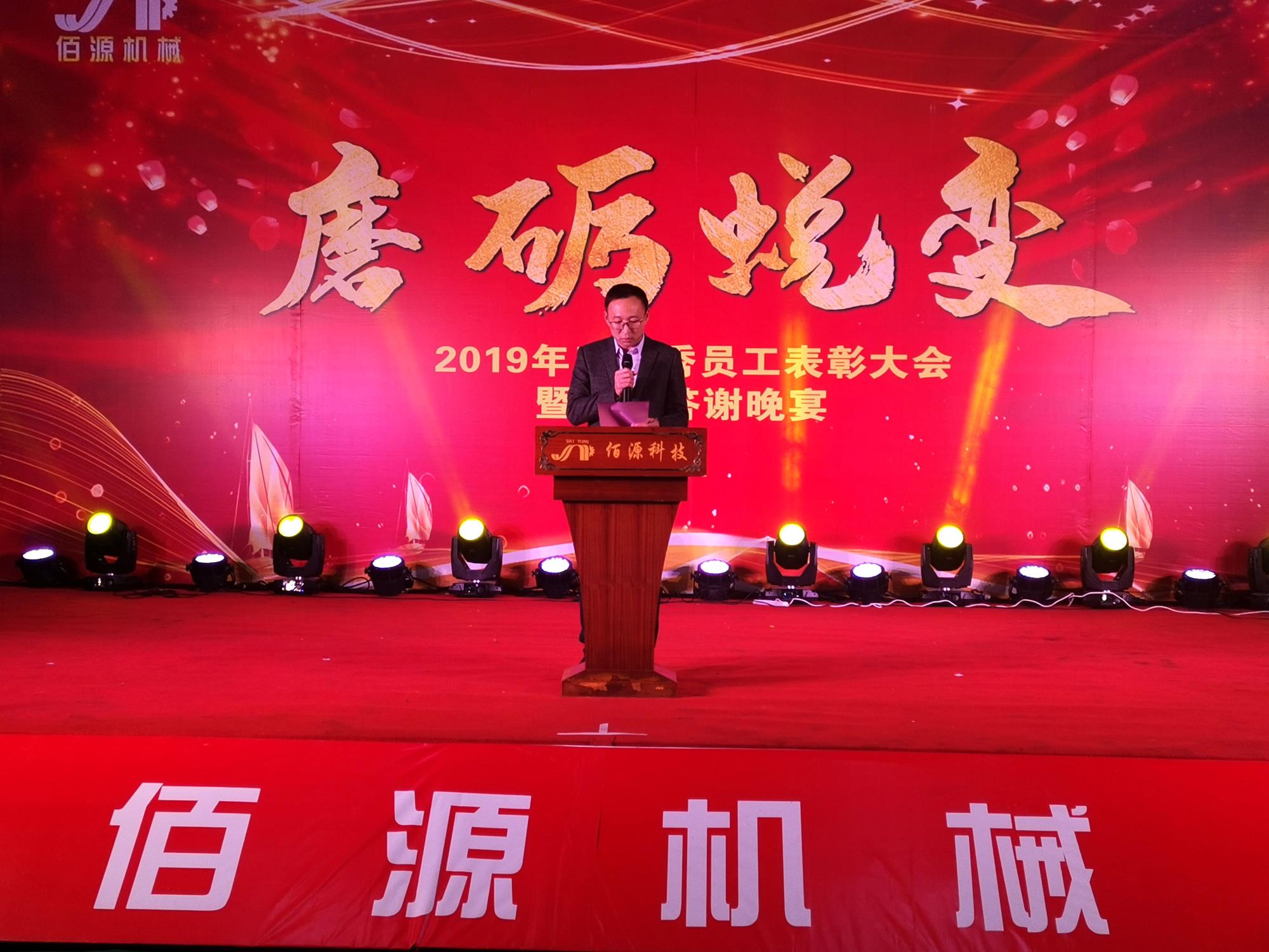 發(fā)布時間:[ 2020-02-19 ]磨礪蛻變,2019年度優(yōu)秀員工表彰大會暨尾牙答謝晚宴報道2020年1月10日,泉州佰源機械科技有限公司于公司廠區(qū)內(nèi)部舉辦了以“磨礪蛻變”為主題的2019年度優(yōu)秀員工表彰大會暨尾牙答謝晚宴,近500名員工和嘉賓齊聚一堂,共饗盛典。對酒當歌,其樂融融,回望輝煌過去,把握現(xiàn)在,展望美好未來。2019年悄然過去,我們有成功,有喜悅…